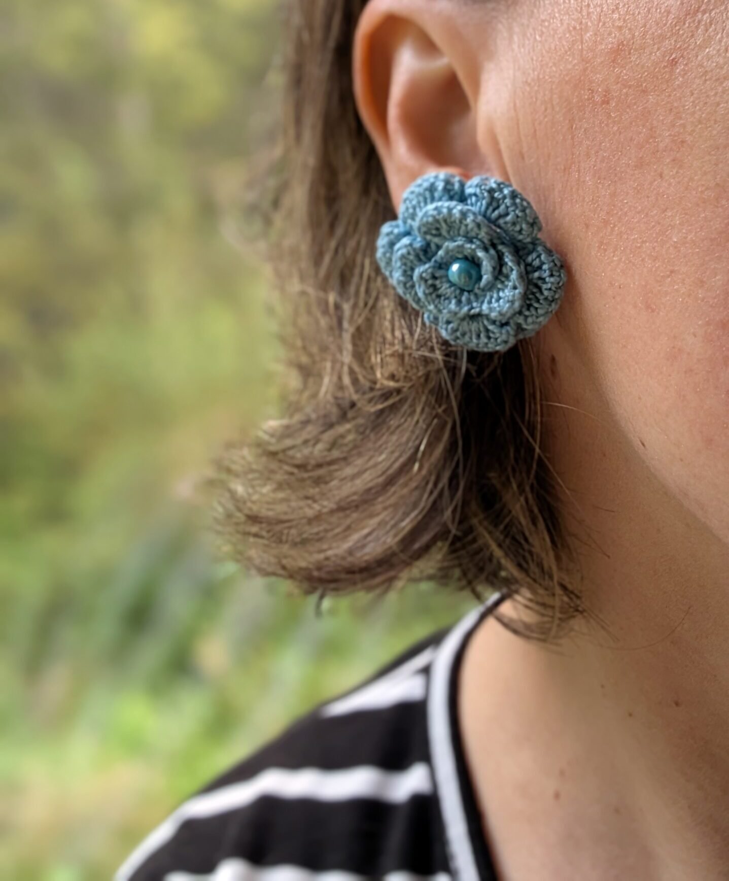 Crocheted beaded stainless steel and hypoallergenic earrings